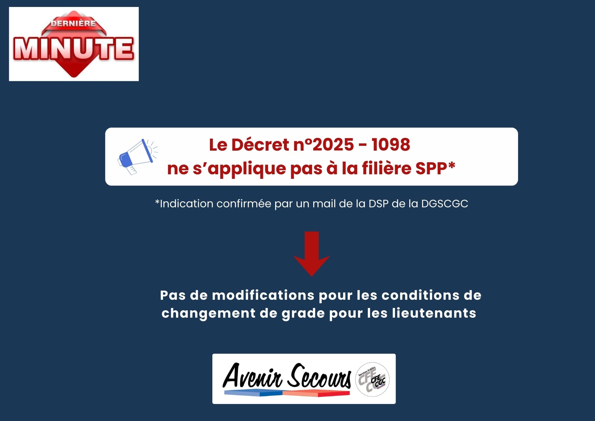 Catégorie B, Lieutenants, Réponse par mail de la DGSCGC/DSP
